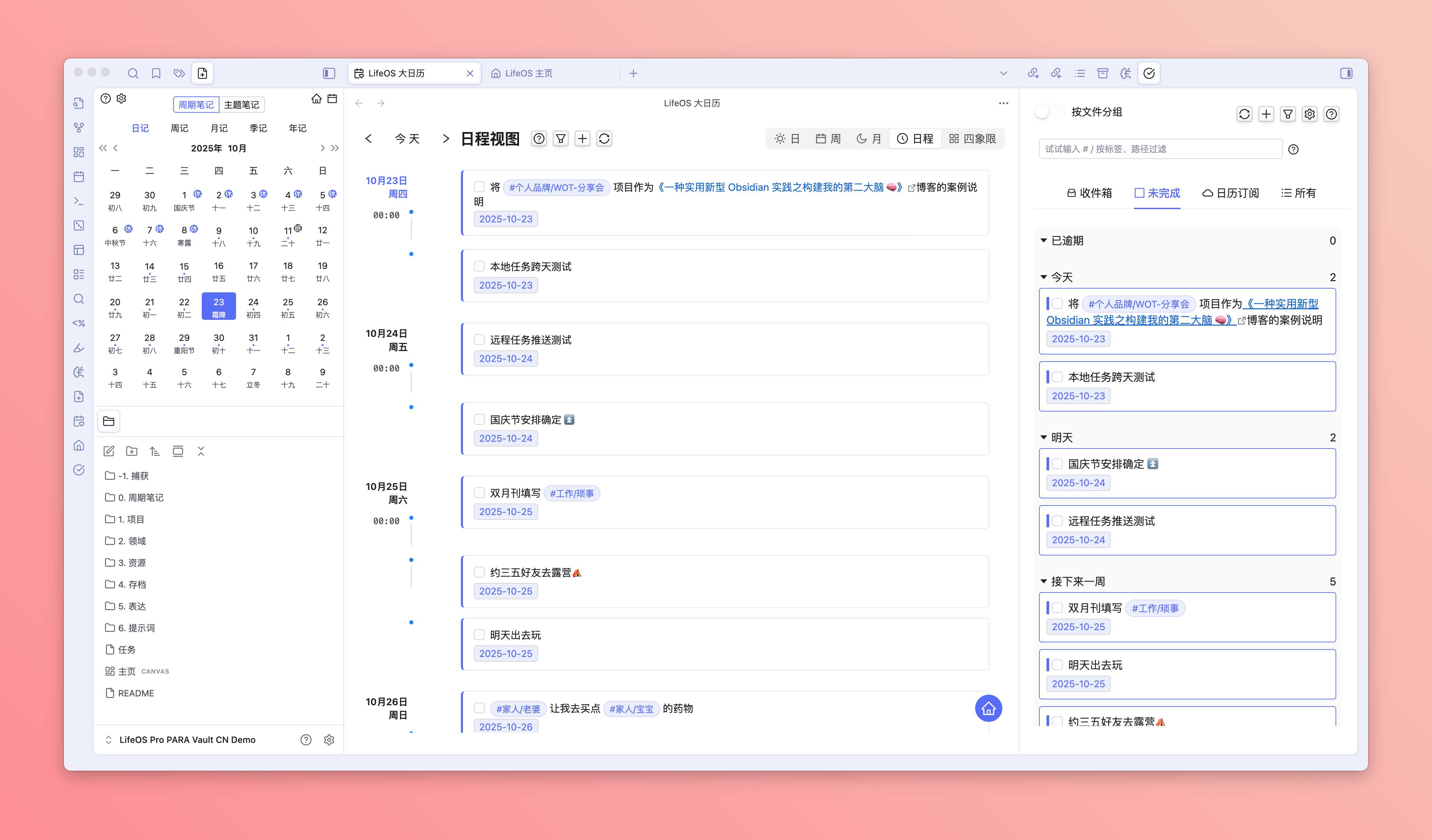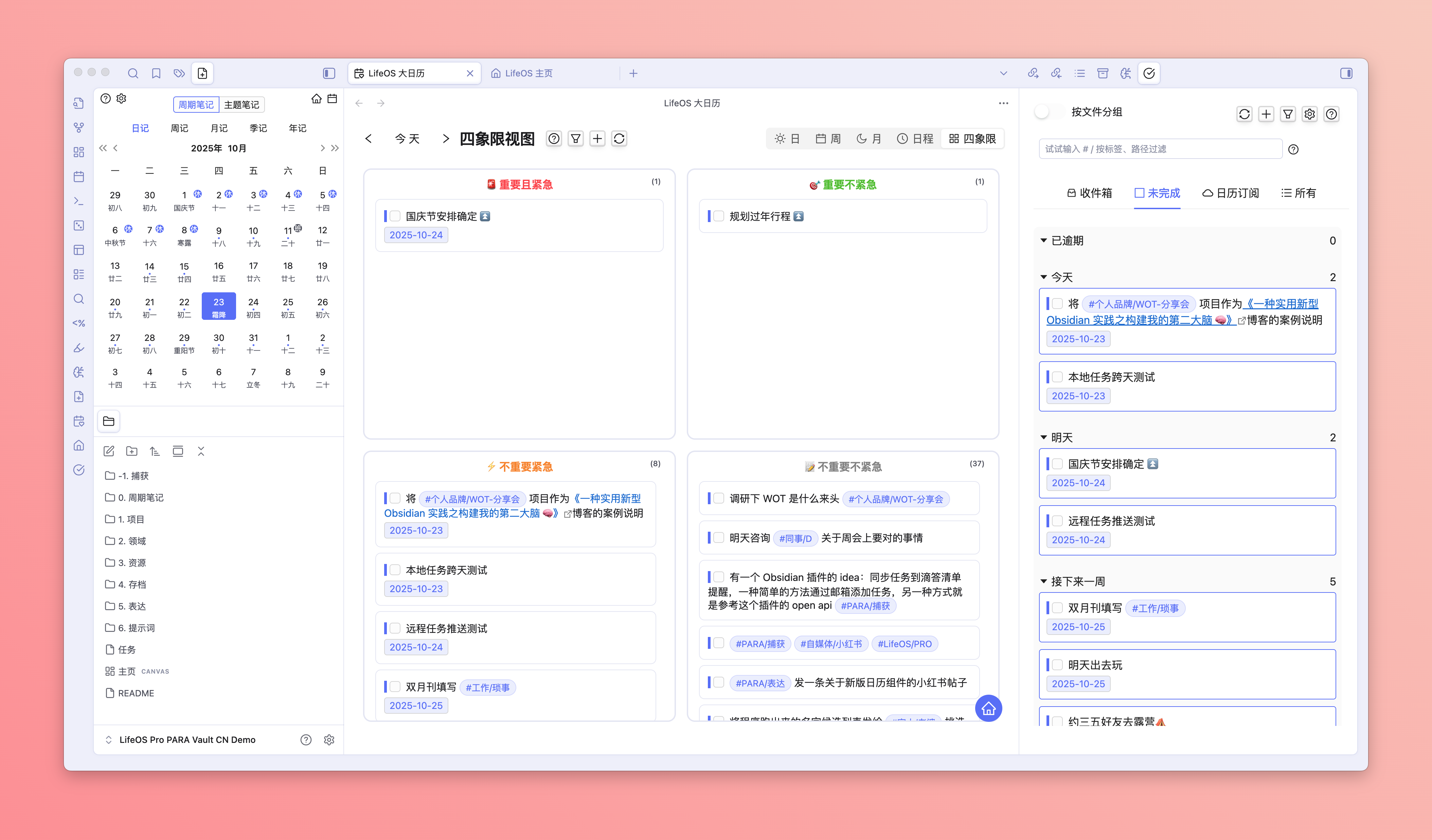 LifeOS 旨在成为你的生活系统,新版首页简洁实用,让你一目了然地掌握系统的输入、项目(主题)、任务和输出情况,帮你更好地统筹生活和工作。